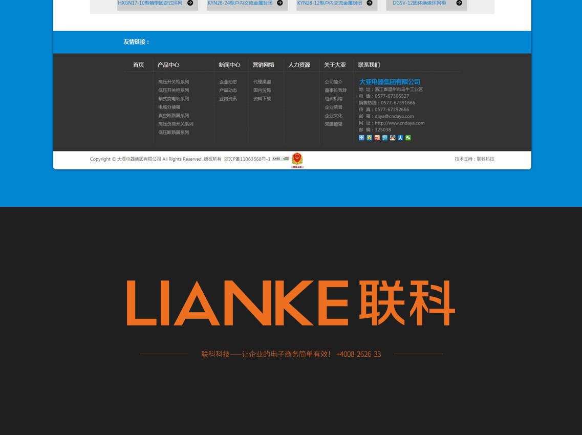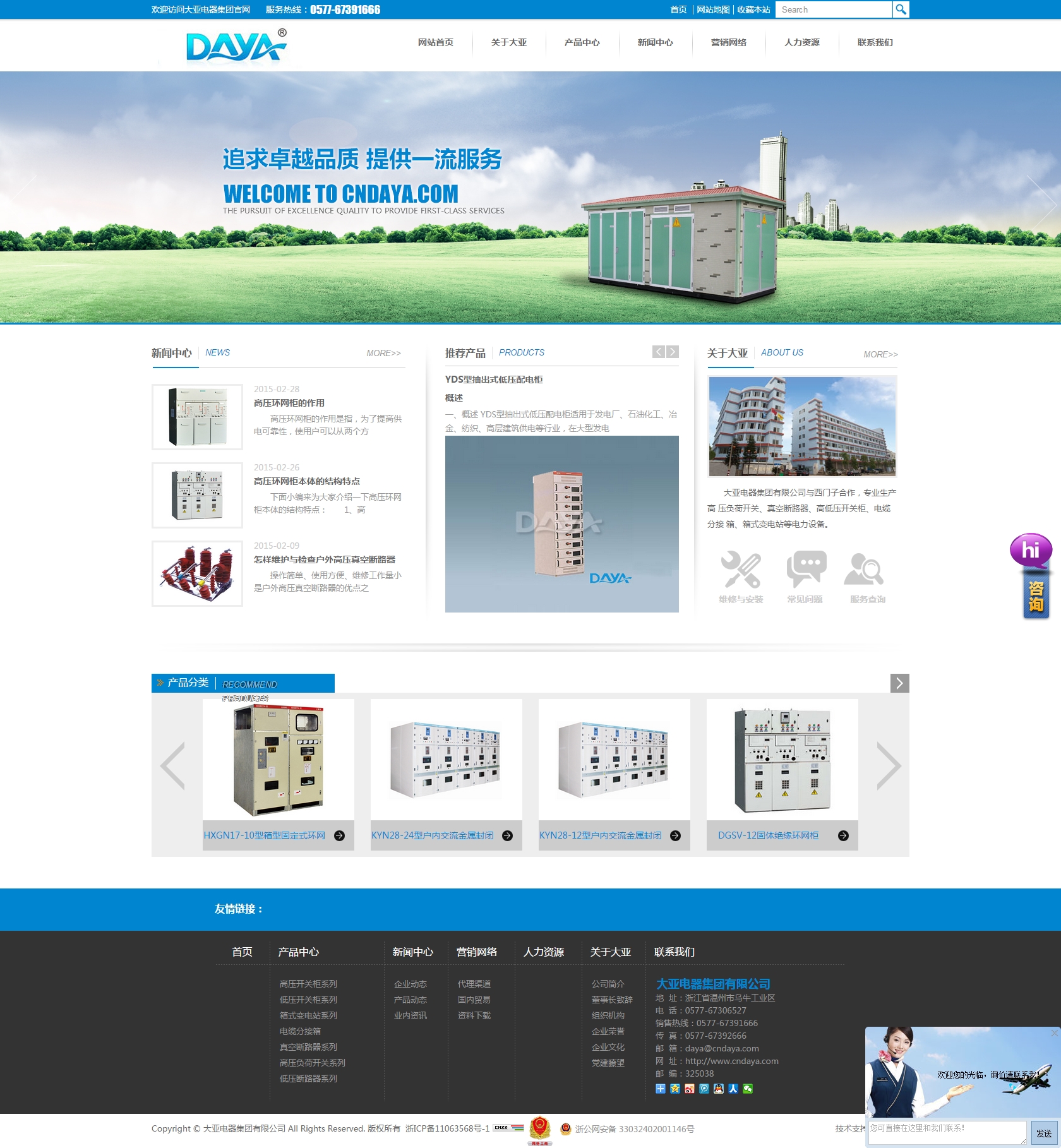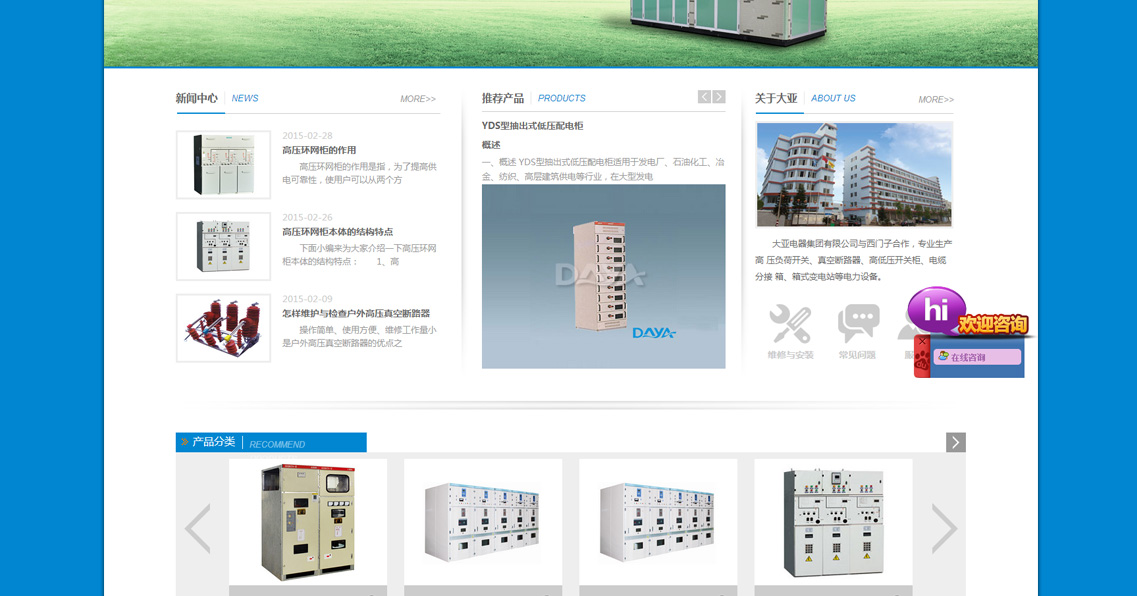 大亞電器集團有限公司(前身浙江大亞電 器設備廠)創(chuàng)辦于一九八八年,八九年和上海電器 科學研究所技術合作。九零年榮獲原機械工業(yè)部、 電力工業(yè)部生產(chǎn)高低壓開關成套設備定點企業(yè)、國 家經(jīng)貿(mào)委兩網(wǎng)改造推薦產(chǎn)品企業(yè)。2016年與西班牙西蒙電力科技有限公司中外合資組成更強大的集團公司。