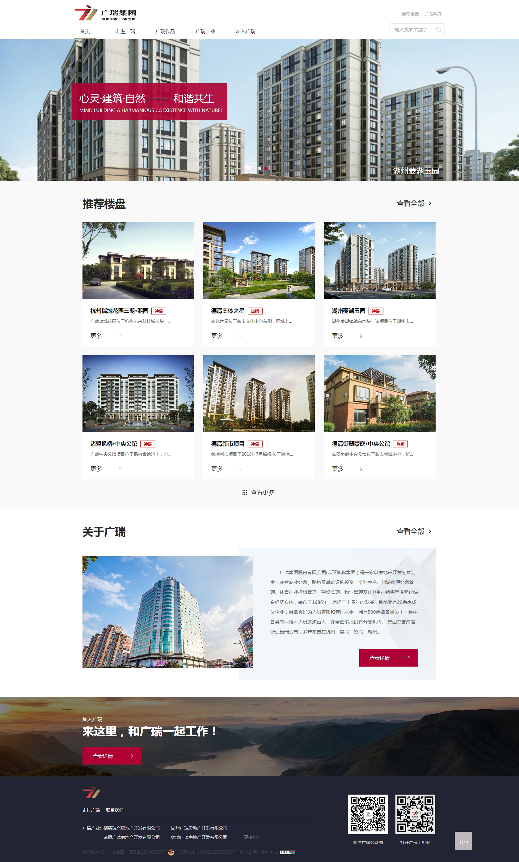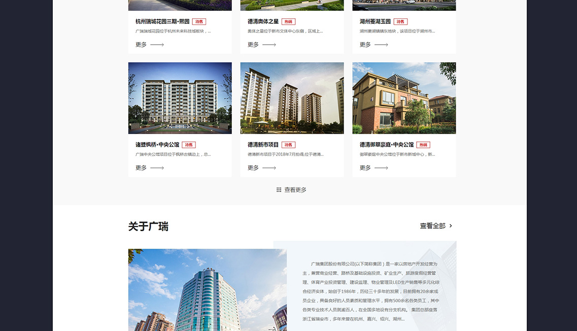 廣瑞集團(tuán)股份有限公司(以下簡(jiǎn)稱集團(tuán))是一家以房地產(chǎn)開發(fā)經(jīng)營(yíng)為主,兼營(yíng)商業(yè)經(jīng)營(yíng)、路橋及基礎(chǔ)設(shè)施投資、礦業(yè)生產(chǎn)、旅游度假經(jīng)營(yíng)管理、體育產(chǎn)業(yè)投資管理、建設(shè)監(jiān)理、物業(yè)管理及LED生產(chǎn)銷售等多元化綜合經(jīng)濟(jì)實(shí)體,始創(chuàng)于1986年,歷經(jīng)三十多年的發(fā)展,目前擁有20余家成員企業(yè),具備良好的人員素質(zhì)和管理水平,擁有500余名各類員工,其中各類專業(yè)技術(shù)人員就逾百人,在全國(guó)多地設(shè)有分支機(jī)構(gòu)。 集團(tuán)總部座落浙江省瑞安市,多年來(lái)曾在杭州、嘉興、紹興、湖州、上海、桂林、呼和浩特、昆明、遼寧阜新、貴州黔西南州、澳大利亞墨爾本等地設(shè)立分支機(jī)構(gòu),并在當(dāng)?shù)剡M(jìn)行開發(fā)、經(jīng)營(yíng)、生產(chǎn)、管理。