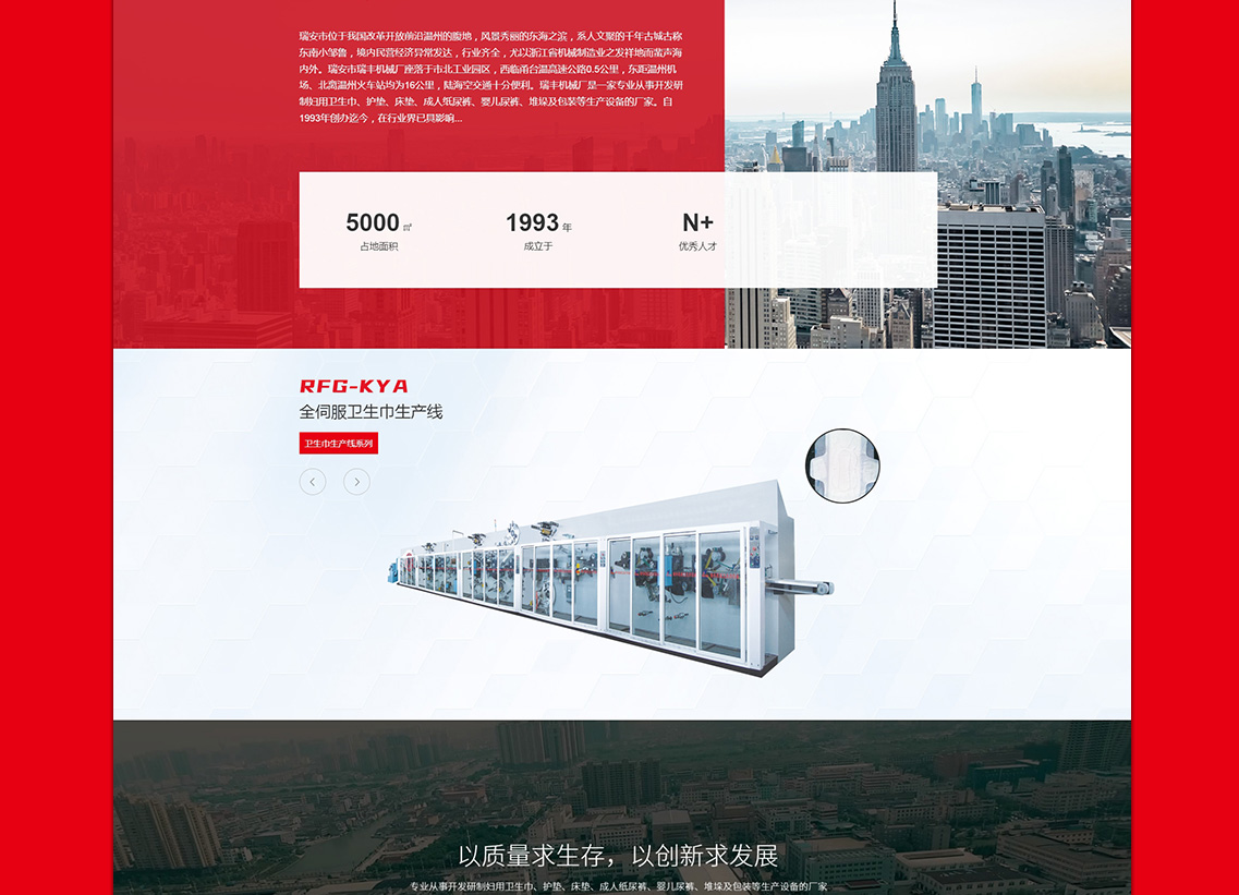 瑞安市位于我國(guó)改革開放前沿溫州的腹地,風(fēng)景秀麗的東海之濱,系人文聚的千年古城古稱東南小鄒魯,境內(nèi)民營(yíng)經(jīng)濟(jì)異常發(fā)達(dá),行業(yè)齊全,尤以浙江省機(jī)械制造業(yè)之發(fā)祥地而蜚聲海內(nèi)外。瑞安市瑞豐機(jī)械廠座落于市北工業(yè)園區(qū),西臨甬臺(tái)溫高速公路0.5公里,東距溫州機(jī)場(chǎng)、北離溫州火車站均為16公里,陸海空交通十分便利。瑞豐機(jī)械廠是一家專業(yè)從事開發(fā)研制婦用衛(wèi)生巾、護(hù)墊、床墊、成人紙尿褲、嬰兒尿褲、堆垛及包裝等生產(chǎn)設(shè)備的廠家。自1993年創(chuàng)辦迄今,在行業(yè)界已具影響。我廠廠區(qū)占地面積約5000多平方米,生產(chǎn)車間標(biāo)準(zhǔn)、規(guī)范、配套設(shè)備齊全,