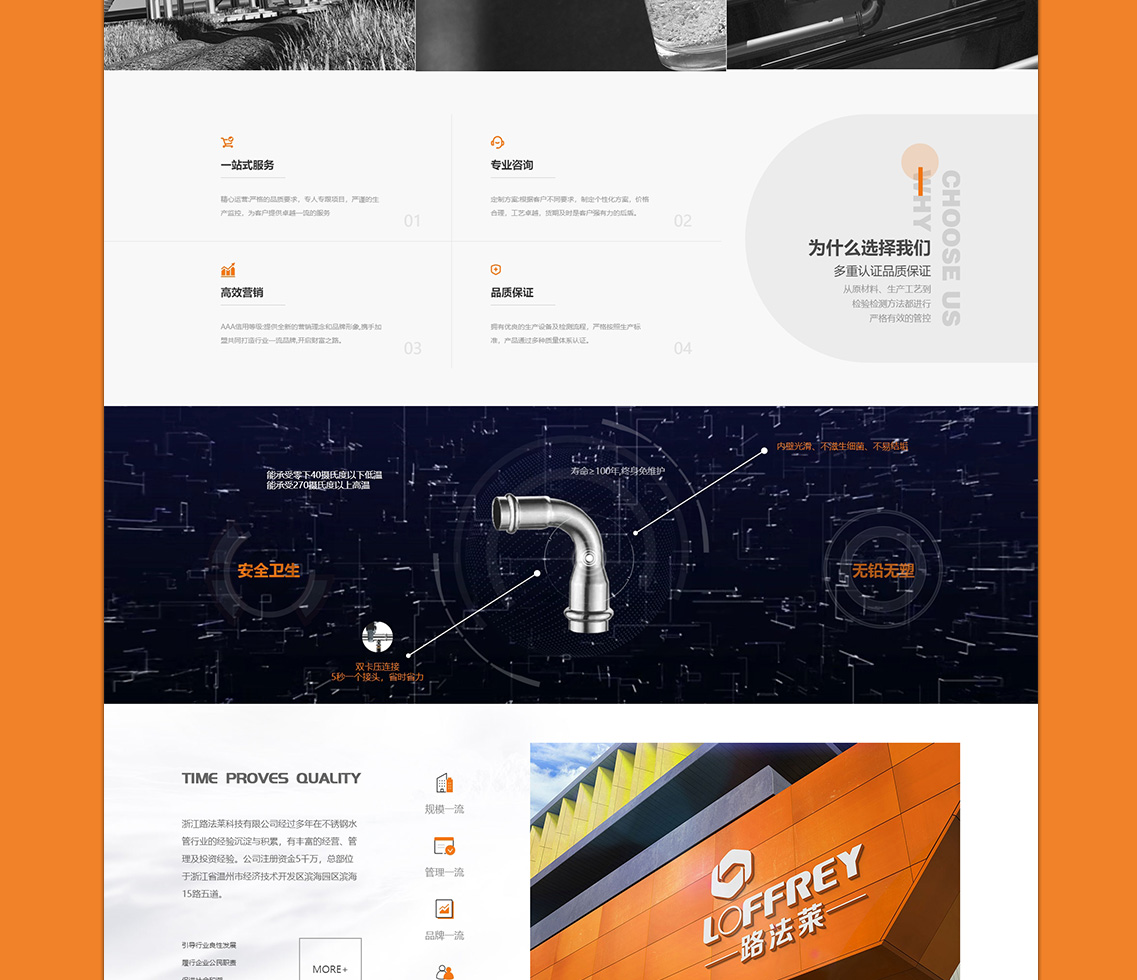 浙江路法萊科技有限公司經(jīng)過(guò)多年在不銹鋼水管行業(yè)的經(jīng)驗(yàn)沉淀與積累,有豐富的經(jīng)營(yíng)、管理及投資經(jīng)驗(yàn)。公司注冊(cè)資金5千萬(wàn),總部位于浙江省溫州市經(jīng)濟(jì)技術(shù)開(kāi)發(fā)區(qū)濱海園區(qū)濱海15路五道。公司專(zhuān)業(yè)生產(chǎn)不銹鋼管件,制造,加工,銷(xiāo)售,研發(fā)不銹鋼水管【環(huán)壓、雙卡壓、溝槽、承插焊、對(duì)接焊以及配套分水器】五大系列產(chǎn)品,廣泛應(yīng)用于燃?xì)夤艿老到y(tǒng)中高端建筑水系統(tǒng),空壓管道系統(tǒng),家度凈水系統(tǒng),食品以及醫(yī)藥流體輸送等領(lǐng)域
