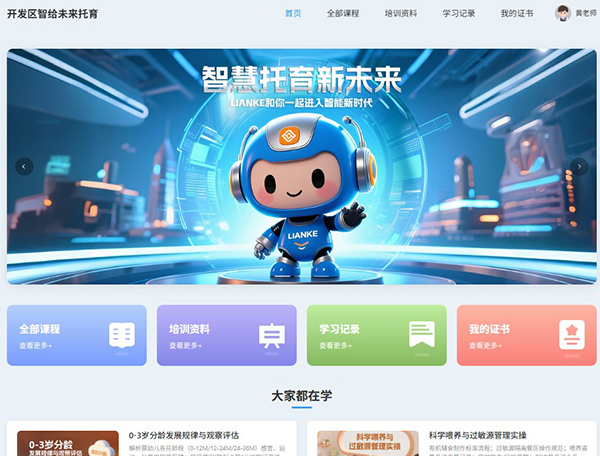 托育服務(wù)從業(yè)人員師資培訓(xùn)管理信息系統(tǒng)發(fā)布,該系統(tǒng)由聯(lián)科科技公司基于智慧托育平臺而開發(fā),滿足各地衛(wèi)健委建設(shè)區(qū)域托育行業(yè)從業(yè)人員師資培訓(xùn)和管理考核的需求,貫徹落實關(guān)于促進(jìn)托育服務(wù)高質(zhì)量發(fā)展的方針政策,加強托育服務(wù)人才隊伍建設(shè)。