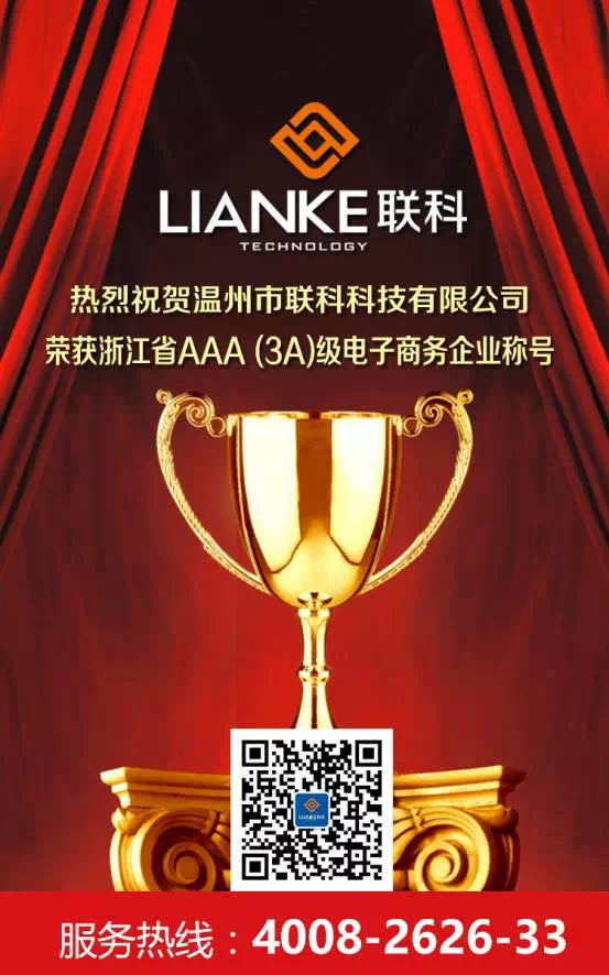 熱烈祝賀溫州市聯(lián)科科技有限公司榮獲浙江省AAA (3A)級電子商務(wù)企業(yè)稱號