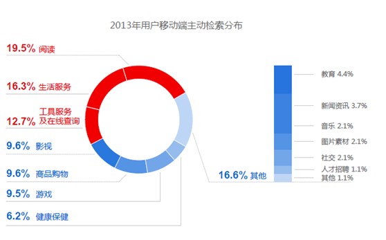 在百度站長(zhǎng)平臺(tái)發(fā)布的《2014年中國(guó)網(wǎng)站運(yùn)營(yíng)發(fā)展趨勢(shì)報(bào)告》中我們得到這樣一組數(shù)據(jù),用戶主動(dòng)檢索的分布主要是集中在生活服務(wù)、商品購(gòu)物、健康保健、影視視頻相關(guān)、教育相關(guān)、音樂(lè)相關(guān)、小說(shuō)、基于地理位置的信息服務(wù)(LBS)、游戲這幾個(gè)方面,可以看出用戶在這些方面的需求非常旺盛的。