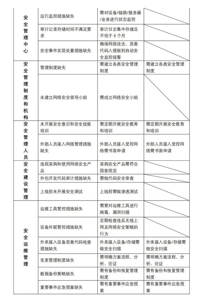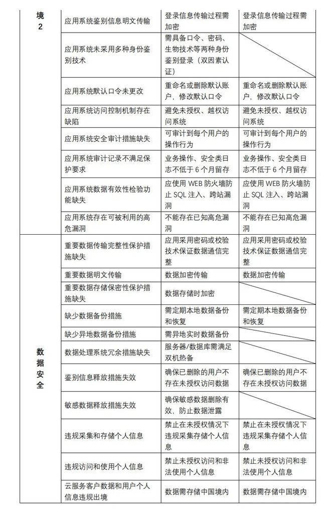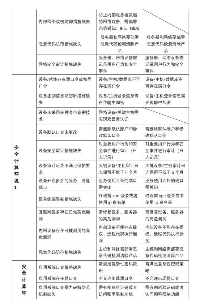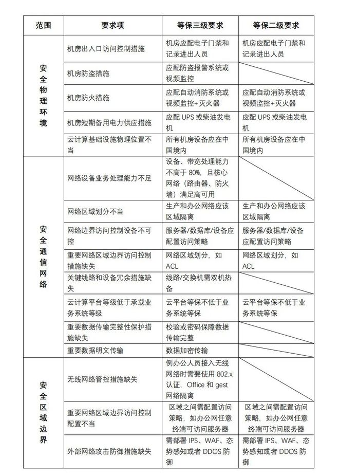 本文參考了《T/ISEAA 001-2020 網(wǎng)絡(luò)安全等級保護(hù)測評高風(fēng)險判定指引》,整理出了等保三級、二級所需產(chǎn)品和要求。研發(fā)或運維人員通過該表可直觀了解自己的系統(tǒng)與等保要求存在的差距,并做出相應(yīng)整改。